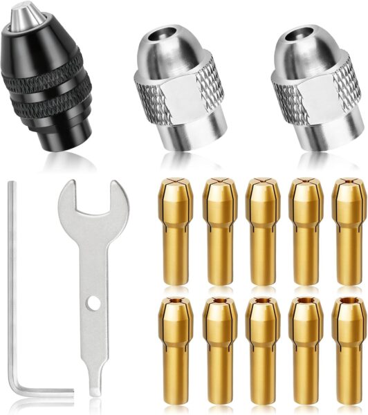 【Set van 15 precisieboorkoppen van messing】Past op een groot aantal boormaten van 0,5 mm tot 3,2 mm en houdt ze stevig. Compatibel met Dremel-gereedschappen, ideaal voor vele toepassingen, waaronder fijn slijpen, boren en graveren.